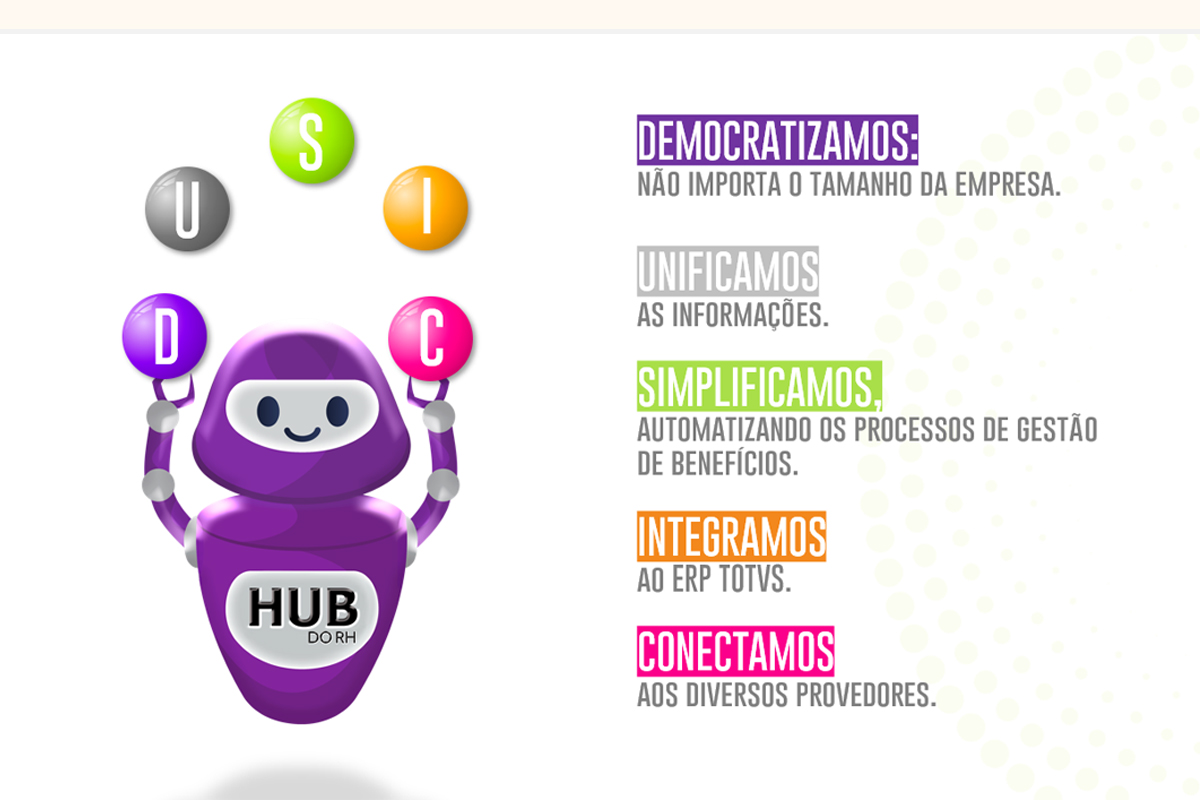 Democratizamos, não importa seu tamanho ,acesso ao provedor igual para todos. Descomplicamos, independente de seu sistema, tratamos e organizamos os dados. Conectamos, ao seu provedor. Entregamos automação e inteligência em benefícios para RHs.